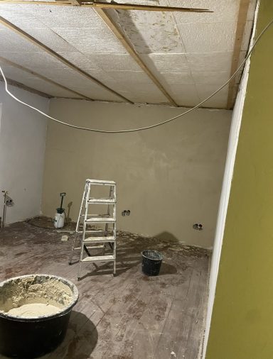 Bei diesem Projekt wurde der gesamte Innenbereich vollständig entkernt und alte Wandbeläge sorgfältig entfernt. Anschließend wurden alle Wände fachgerecht neu verputzt und die komplette Decke erneuert bzw. neu aufgebaut.